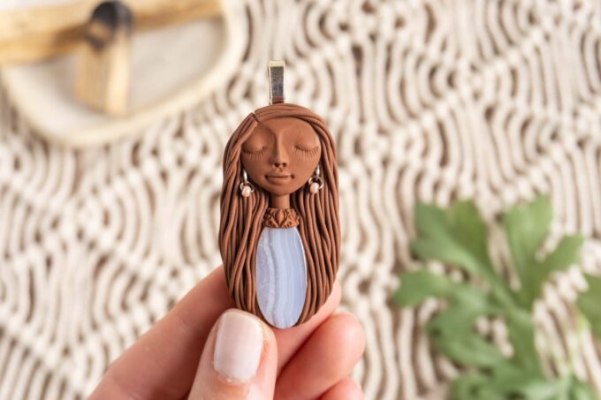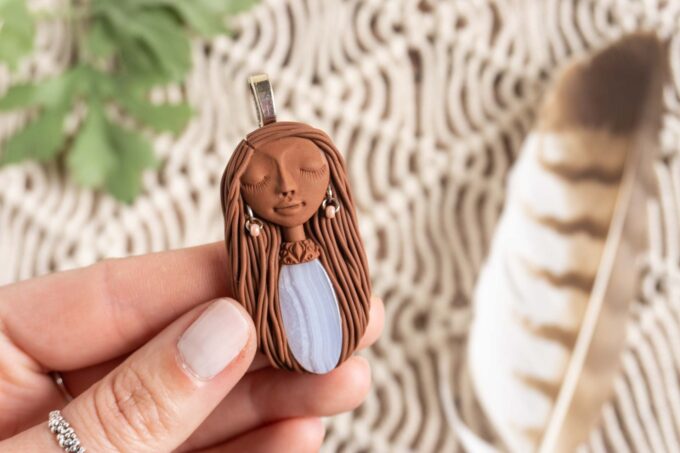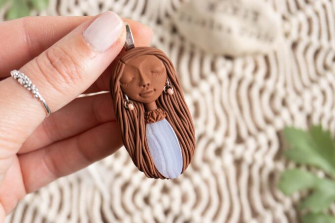 Čarobnica je izdelana iz polimerne gline. Vsak kos je unikaten in na voljo samo en kos. Izdelek lahko minimalno odstopa v barvnih niansah in detajlih, vendar se trudim, da bo vaš izdelek v naravi identičen opisu in fotografiji.