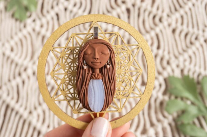 Vsaka Čarobnica je poimenovana po boginjah iz različnih obdobij, kultur in tradicij z vseh koncev sveta. Med izdelavo za vsako Čarobnico posebej povlečem orakelsko karto, ki nosi posebno sporočilo. Z vsako Čarobnico dobite torej še sporočilo, ki ga odkrijete šele, ko odprete paketek.