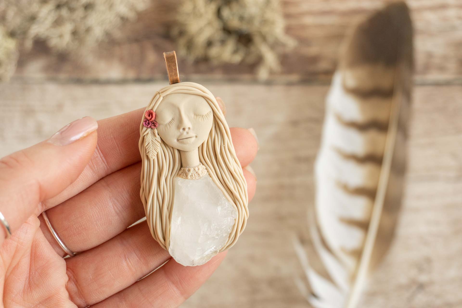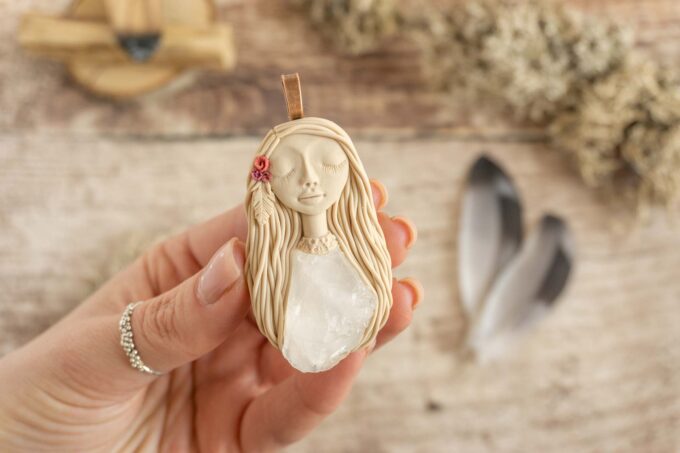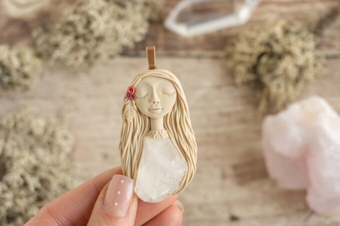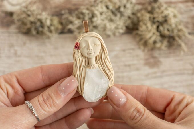 Čarobnica je izdelana iz polimerne gline. Vsak kos je unikaten in na voljo samo en kos. Izdelek lahko minimalno odstopa v barvnih niansah in detajlih, vendar se trudim, da bo vaš izdelek v naravi identičen opisu in fotografiji.