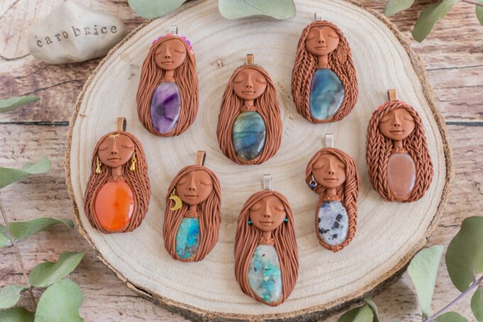 Vsaka Čarobnica je poimenovana po boginjah iz različnih obdobij, kultur in tradicij z vseh koncev sveta. Med izdelavo za vsako Čarobnico posebej povlečem orakelsko karto, ki nosi posebno sporočilo. Z vsako Čarobnico dobite torej še sporočilo, ki ga odkrijete šele, ko odprete paketek.