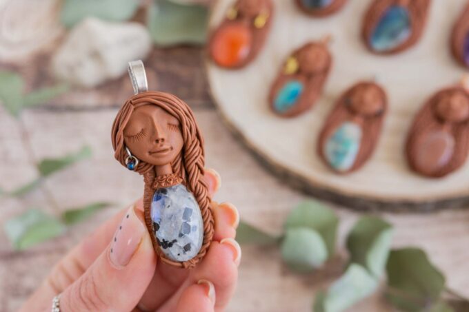 Čarobnica je izdelana iz polimerne gline. Vsak kos je unikaten in na voljo samo en kos. Izdelek lahko minimalno odstopa v barvnih niansah in detajlih, vendar se trudim, da bo vaš izdelek v naravi identičen opisu in fotografiji.
