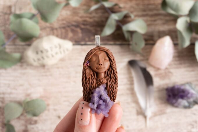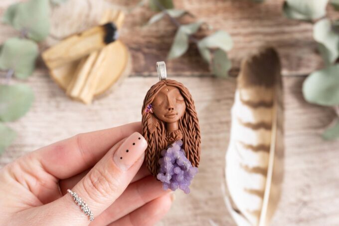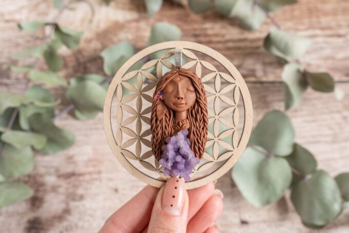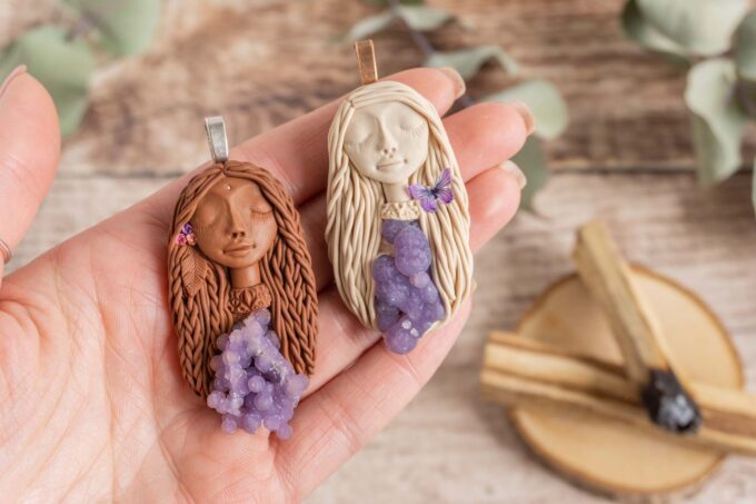 Vsaka Čarobnica je poimenovana po boginjah iz različnih obdobij, kultur in tradicij z vseh koncev sveta. Med izdelavo za vsako Čarobnico posebej povlečem orakelsko karto, ki nosi posebno sporočilo. Z vsako Čarobnico dobite torej še sporočilo, ki ga odkrijete šele, ko odprete paketek.