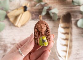Čarobnica je izdelana iz polimerne gline. Vsak kos je unikaten in na voljo samo en kos. Izdelek lahko minimalno odstopa v barvnih niansah in detajlih, vendar se trudim, da bo vaš izdelek v naravi identičen opisu in fotografiji.