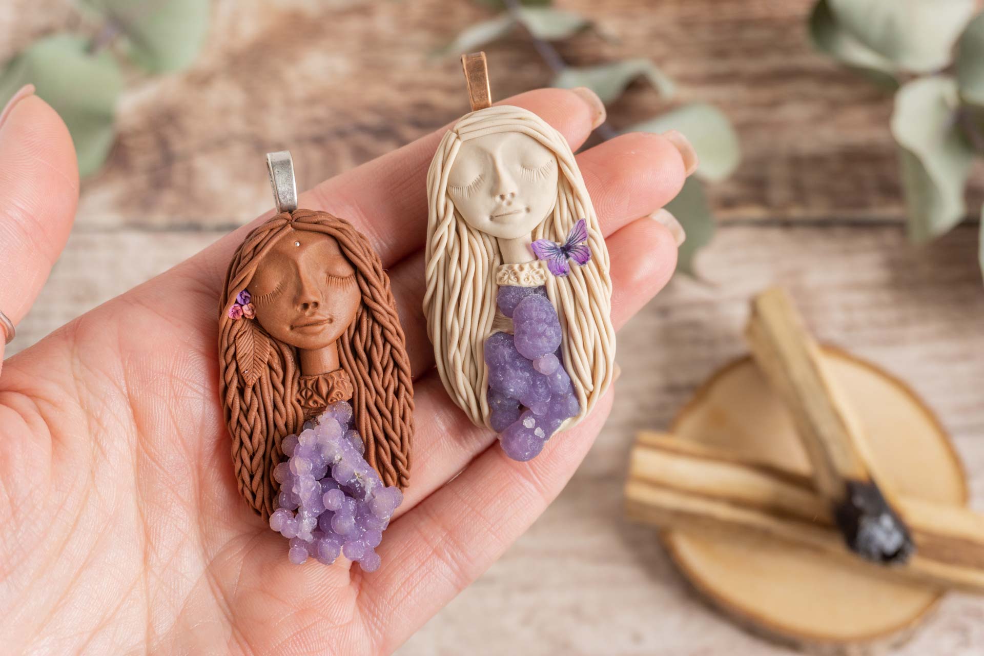 Čarobnice vsebujejo kristale in poldrage kamne. Vsak izdelek je unikaten in ima posebno zgodbo. Tako kot nas določeni kamni pritegnejo in se povežejo z našo energijo, tako tudi Čarobnice iščejo svoje lastnike. Čarobnico si izberete intuitivno ali pa na podlagi kamna, ki ga vsebuje.