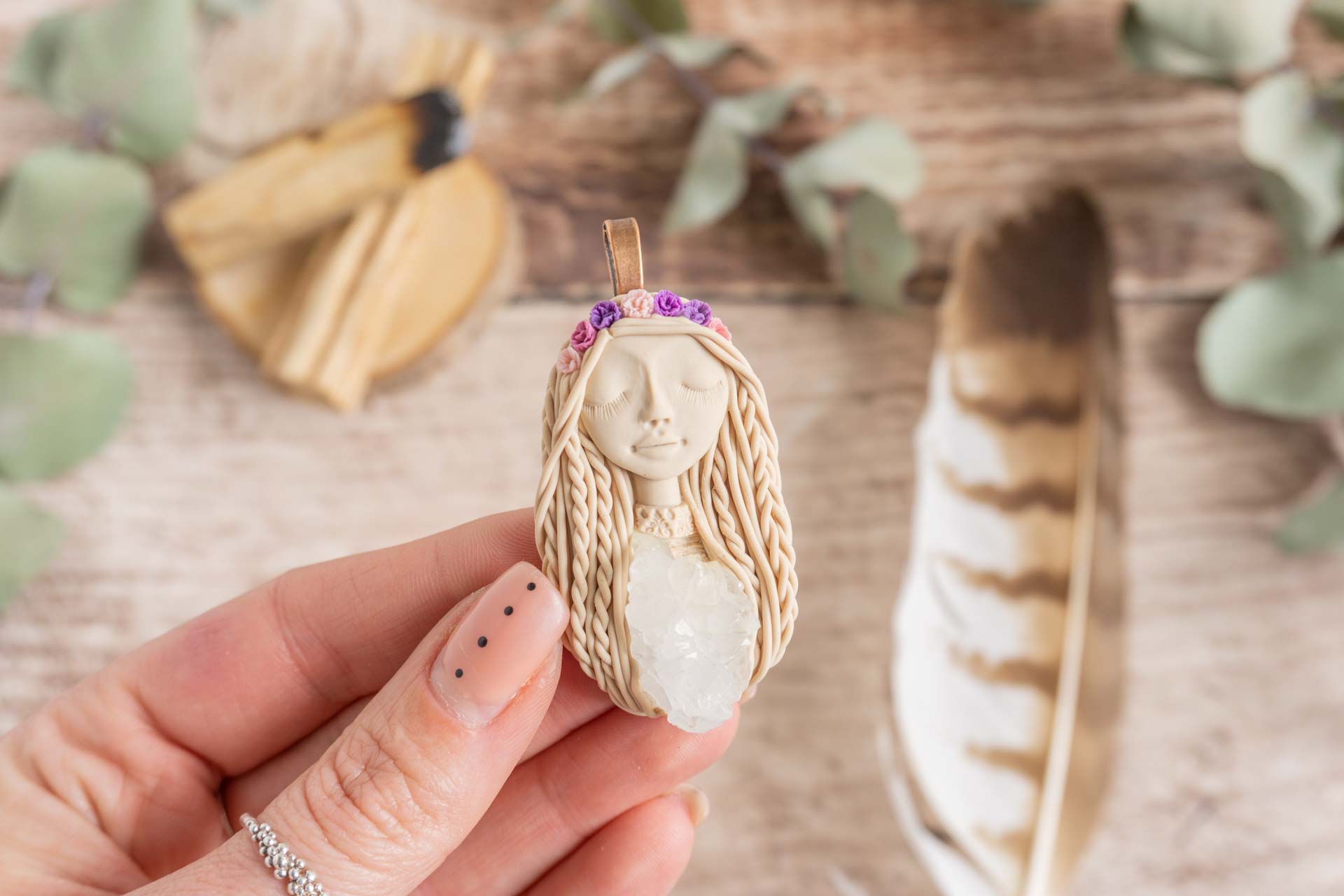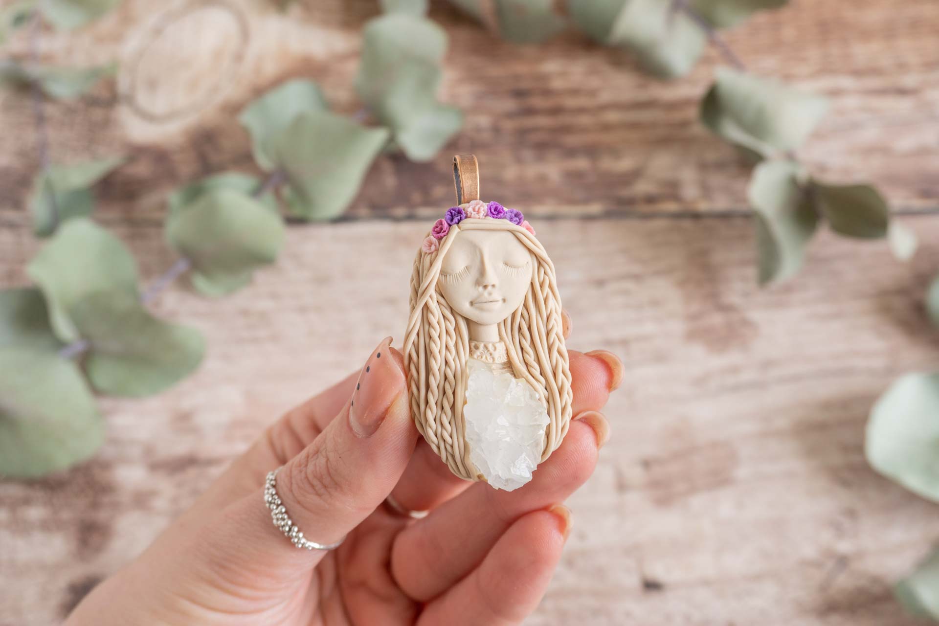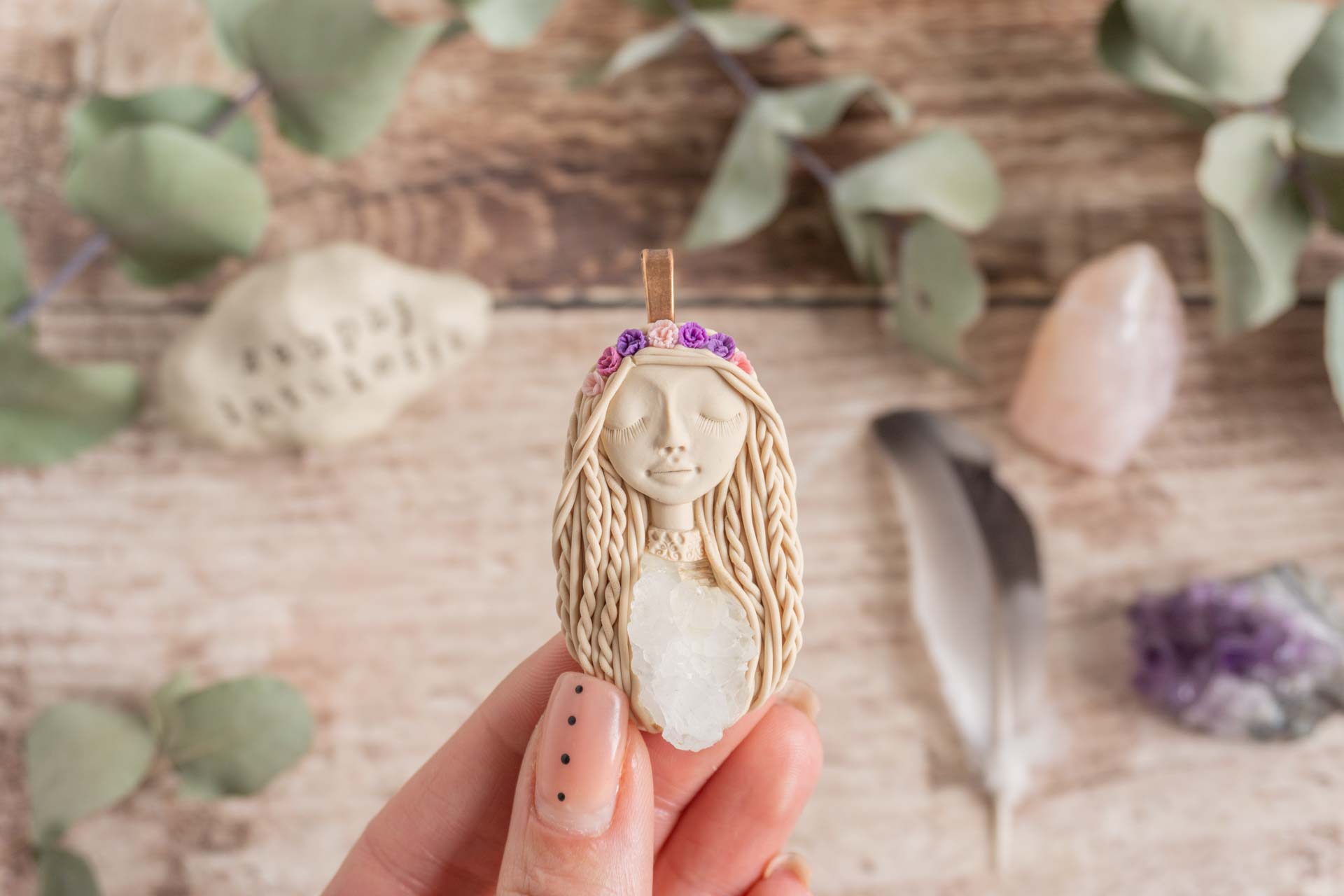 Čarobnica je izdelana iz polimerne gline. Vsak kos je unikaten in na voljo samo en kos. Izdelek lahko minimalno odstopa v barvnih niansah in detajlih, vendar se trudim, da bo vaš izdelek v naravi identičen opisu in fotografiji.