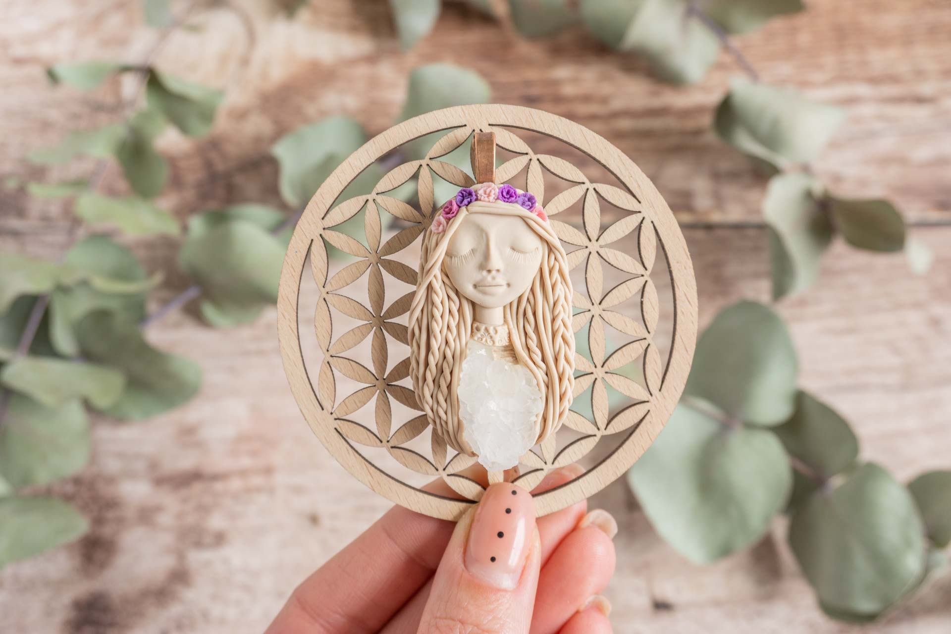 Vsaka Čarobnica je poimenovana po boginjah iz različnih obdobij, kultur in tradicij z vseh koncev sveta. Med izdelavo za vsako Čarobnico posebej povlečem orakelsko karto, ki nosi posebno sporočilo. Z vsako Čarobnico dobite torej še sporočilo, ki ga odkrijete šele, ko odprete paketek.