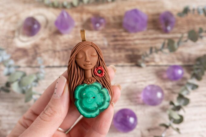Čarobnica je izdelana iz polimerne gline. Vsak kos je unikaten in na voljo samo en kos. Izdelek lahko minimalno odstopa v barvnih niansah in detajlih, vendar se trudim, da bo vaš izdelek v naravi identičen opisu in fotografiji.