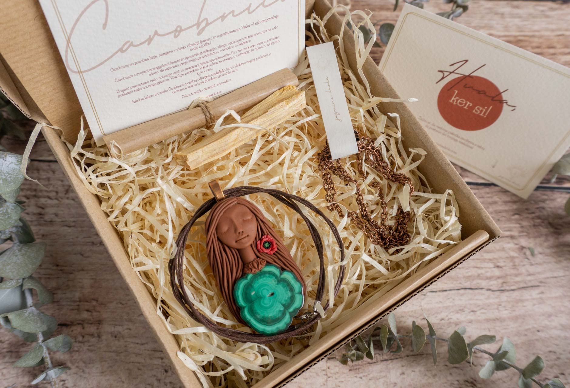 Vsaka Čarobnica je poimenovana po boginjah iz različnih obdobij, kultur in tradicij z vseh koncev sveta. Med izdelavo za vsako Čarobnico posebej povlečem orakelsko karto, ki nosi posebno sporočilo. Z vsako Čarobnico dobite torej še sporočilo, ki ga odkrijete šele, ko odprete paketek.
