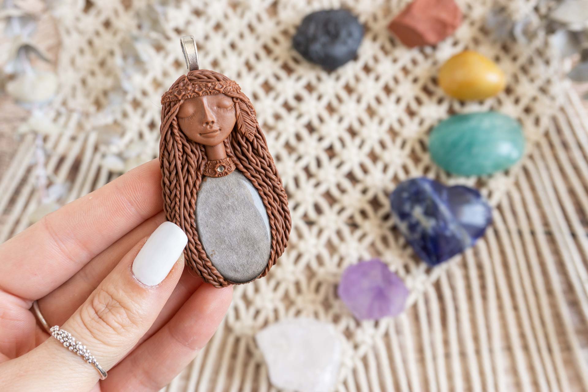 Vsaka Čarobnica je poimenovana po boginjah iz različnih obdobij, kultur in tradicij z vseh koncev sveta. Med izdelavo za vsako Čarobnico posebej povlečem orakelsko karto, ki nosi posebno sporočilo. Z vsako Čarobnico dobite torej še sporočilo, ki ga odkrijete šele, ko odprete paketek.