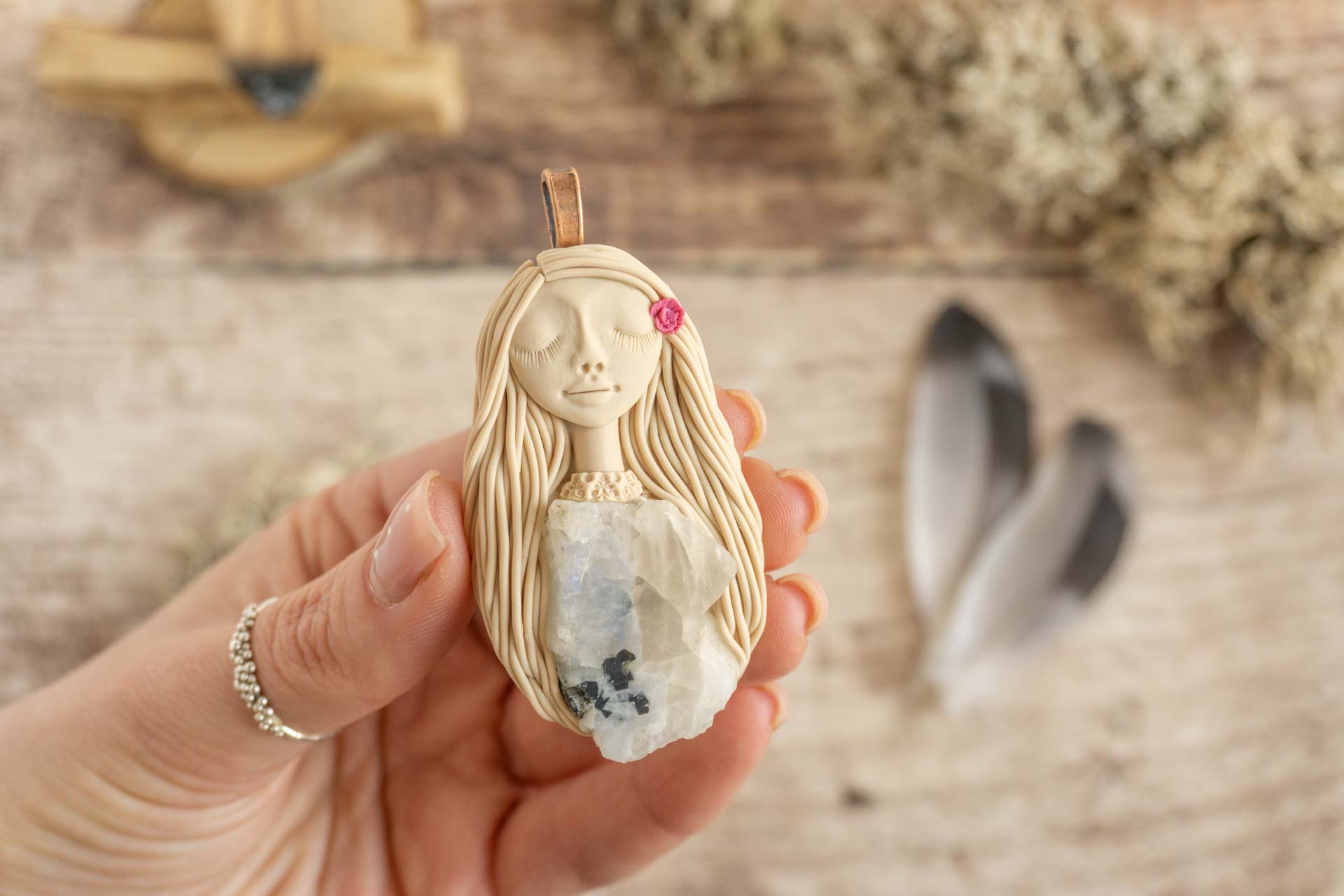 Čarobnica je izdelana iz polimerne gline. Vsak kos je unikaten in na voljo samo en kos. Izdelek lahko minimalno odstopa v barvnih niansah in detajlih, vendar se trudim, da bo vaš izdelek v naravi identičen opisu in fotografiji.
