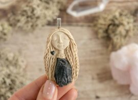 Vsaka Čarobnica je poimenovana po boginjah iz različnih obdobij, kultur in tradicij z vseh koncev sveta. Med izdelavo za vsako Čarobnico posebej povlečem orakelsko karto, ki nosi posebno sporočilo. Z vsako Čarobnico dobite torej še sporočilo, ki ga odkrijete šele, ko odprete paketek.