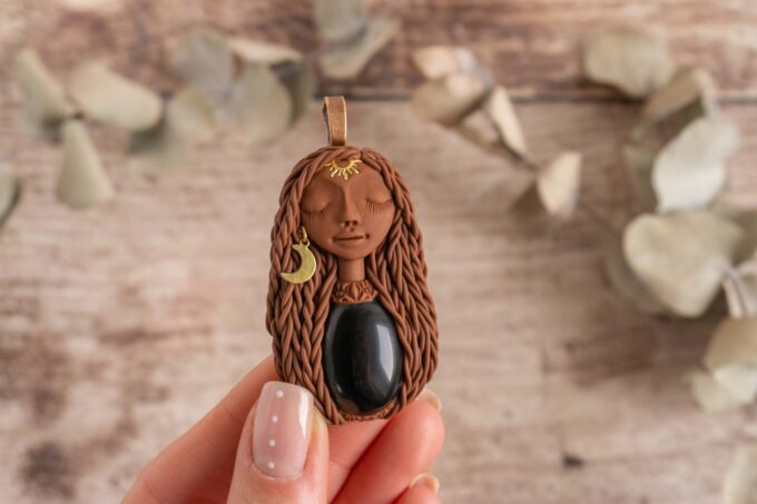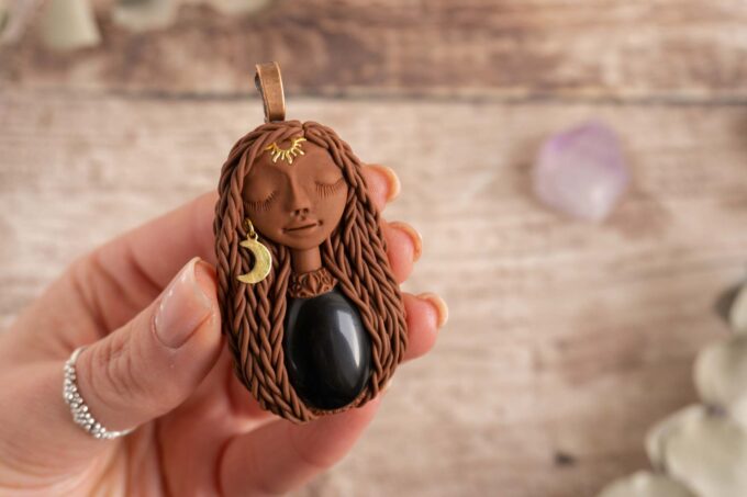 Vsaka Čarobnica je poimenovana po boginjah iz različnih obdobij, kultur in tradicij z vseh koncev sveta. Med izdelavo za vsako Čarobnico posebej povlečem orakelsko karto, ki nosi posebno sporočilo. Z vsako Čarobnico dobite torej še sporočilo, ki ga odkrijete šele, ko odprete paketek.