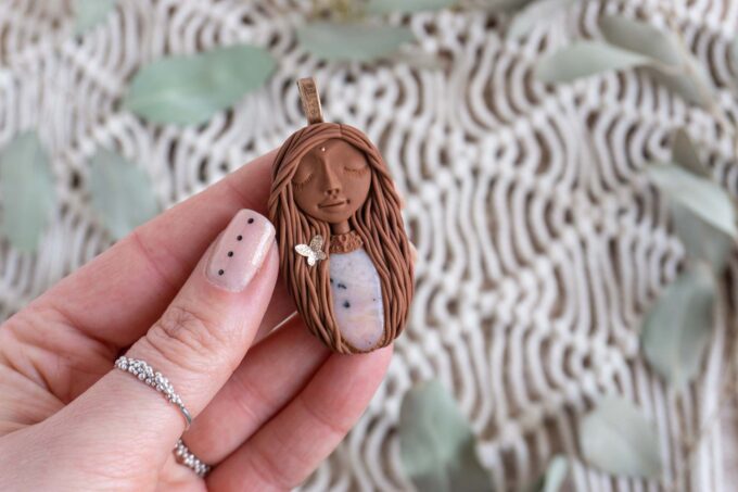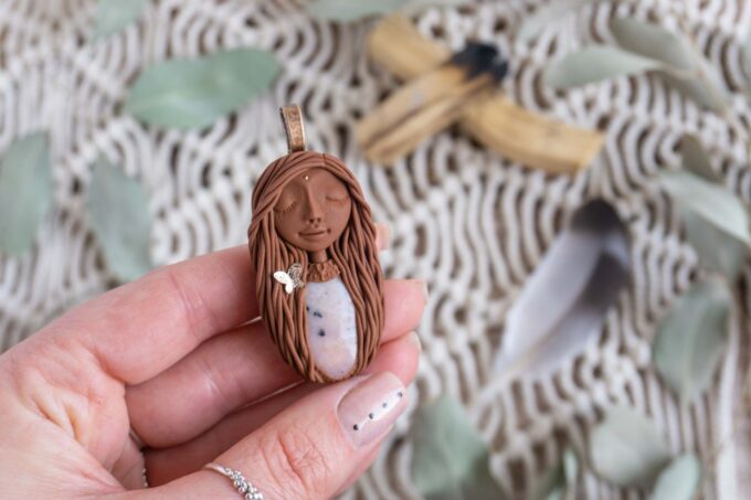 Čarobnica je izdelana iz polimerne gline. Vsak kos je unikaten in na voljo samo en kos. Izdelek lahko minimalno odstopa v barvnih niansah in detajlih, vendar se trudim, da bo vaš izdelek v naravi identičen opisu in fotografiji.