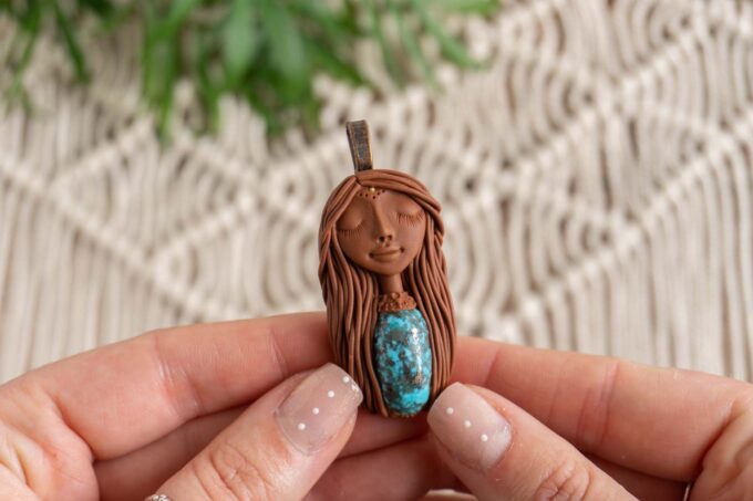 Čarobnica je izdelana iz polimerne gline. Vsak kos je unikaten in na voljo samo en kos. Izdelek lahko minimalno odstopa v barvnih niansah in detajlih, vendar se trudim, da bo vaš izdelek v naravi identičen opisu in fotografiji.