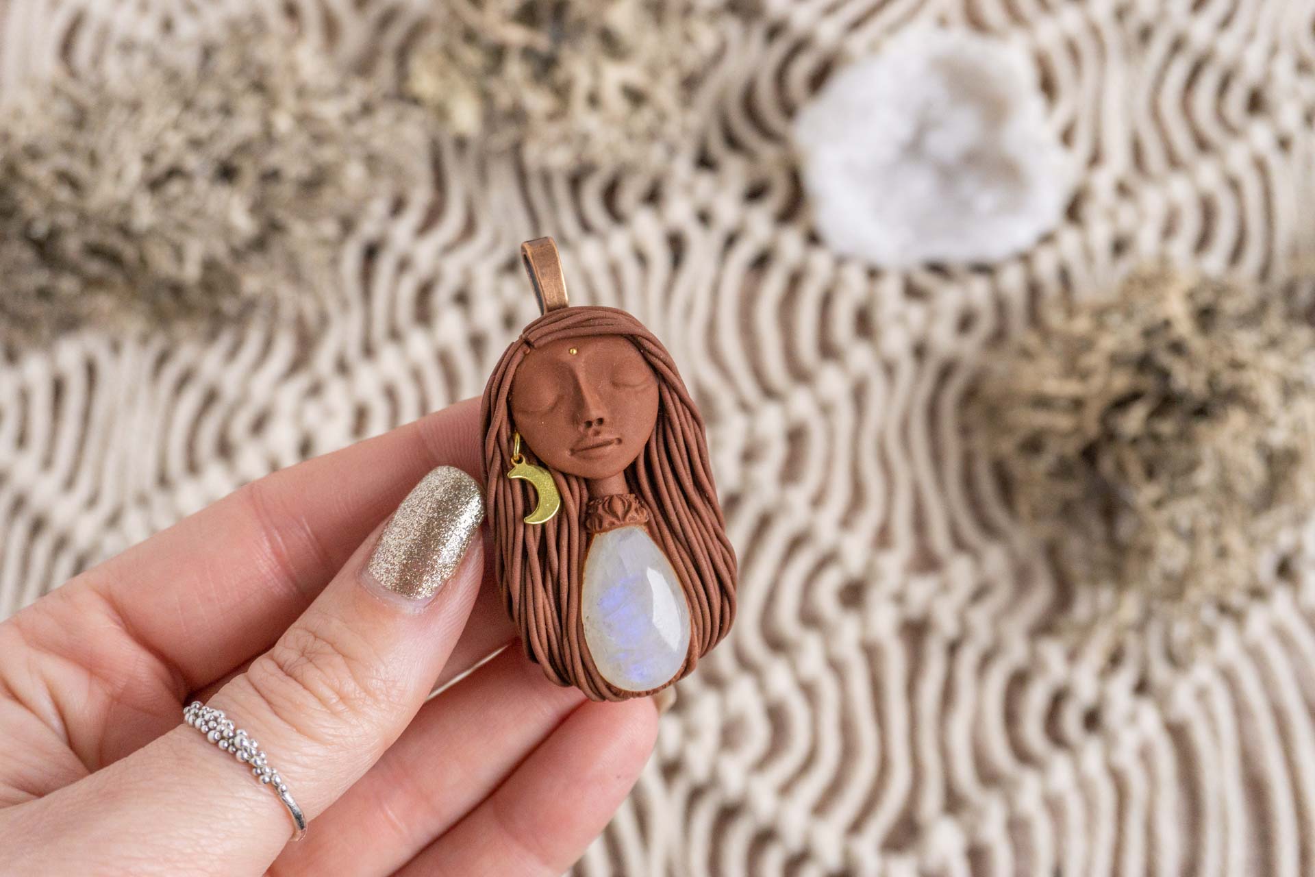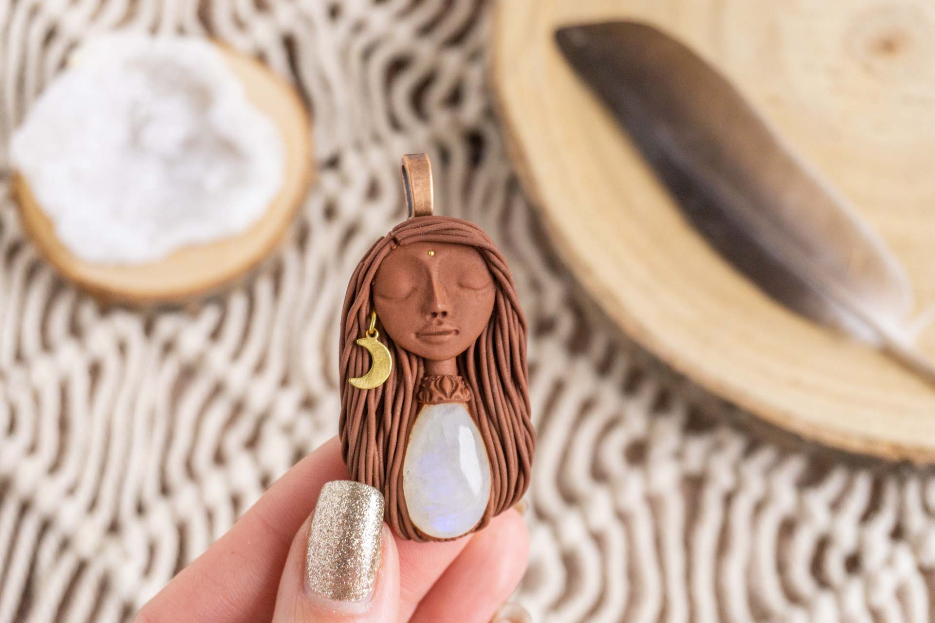 Čarobnica je izdelana iz polimerne gline. Vsak kos je unikaten in na voljo samo en kos. Izdelek lahko minimalno odstopa v barvnih niansah in detajlih, vendar se trudim, da bo vaš izdelek v naravi identičen opisu in fotografiji.