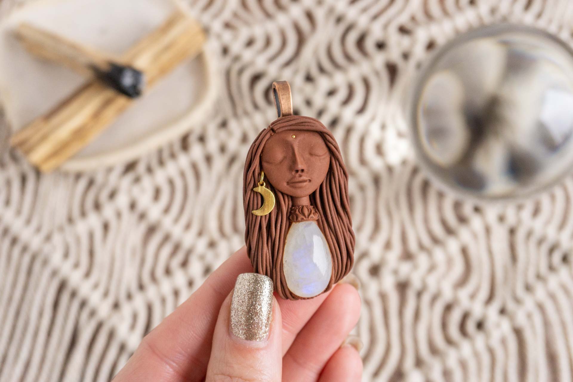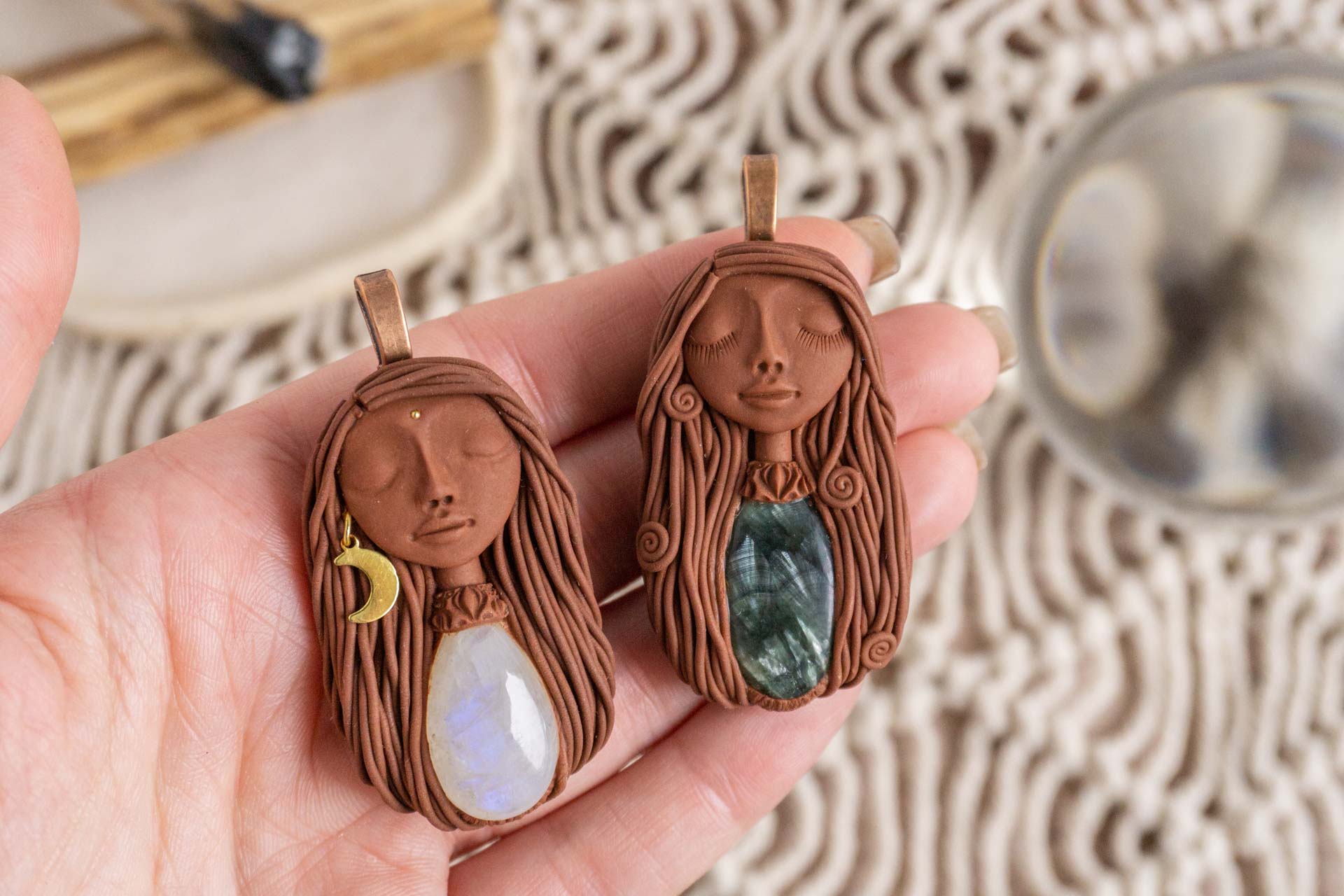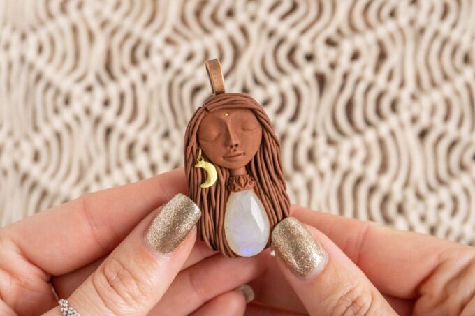 Vsaka Čarobnica je poimenovana po boginjah iz različnih obdobij, kultur in tradicij z vseh koncev sveta. Med izdelavo za vsako Čarobnico posebej povlečem orakelsko karto, ki nosi posebno sporočilo. Z vsako Čarobnico dobite torej še sporočilo, ki ga odkrijete šele, ko odprete paketek.