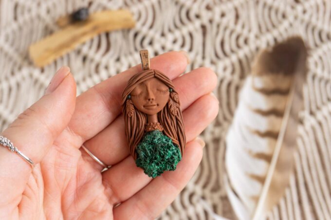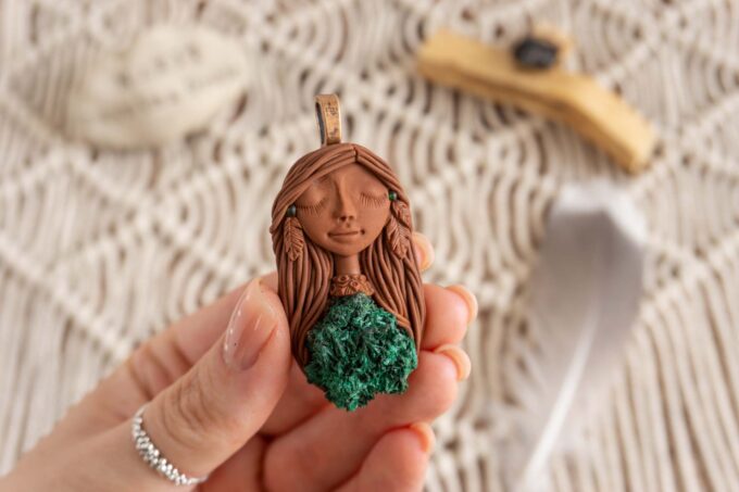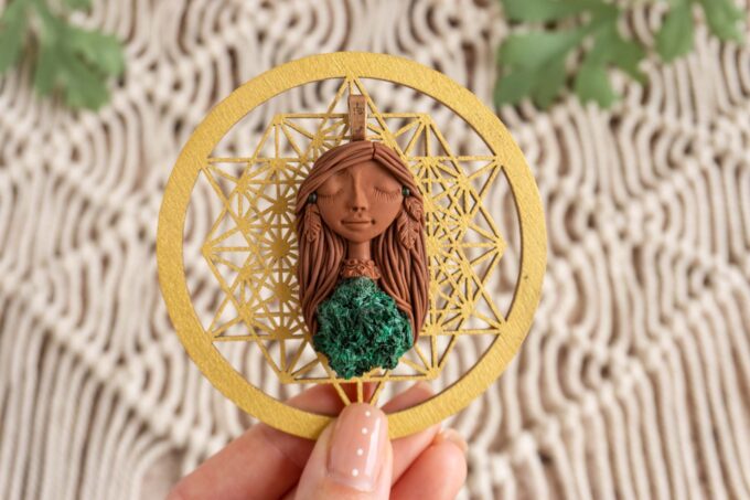 Vsaka Čarobnica je poimenovana po boginjah iz različnih obdobij, kultur in tradicij z vseh koncev sveta. Med izdelavo za vsako Čarobnico posebej povlečem orakelsko karto, ki nosi posebno sporočilo. Z vsako Čarobnico dobite torej še sporočilo, ki ga odkrijete šele, ko odprete paketek.