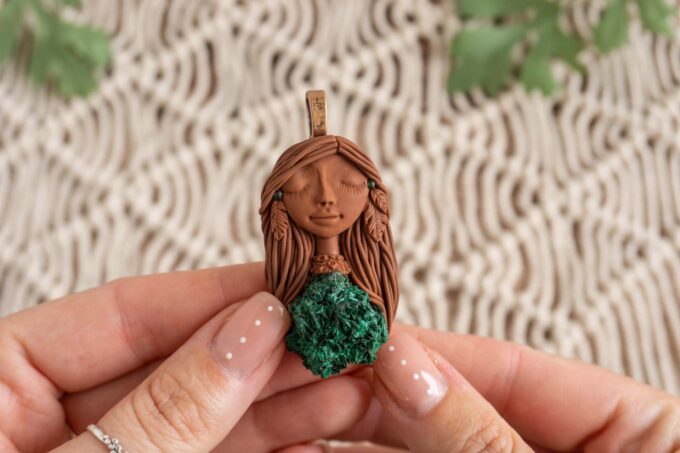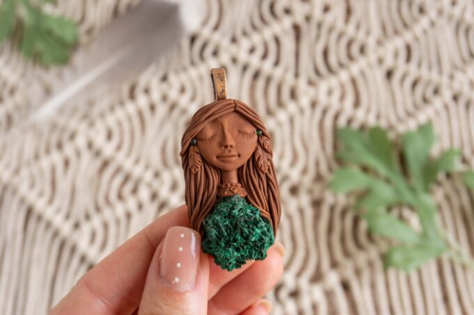 Čarobnica je izdelana iz polimerne gline. Vsak kos je unikaten in na voljo samo en kos. Izdelek lahko minimalno odstopa v barvnih niansah in detajlih, vendar se trudim, da bo vaš izdelek v naravi identičen opisu in fotografiji.