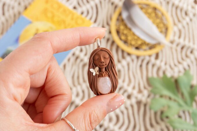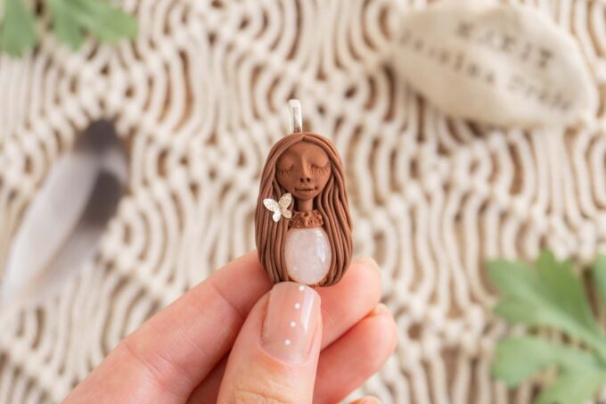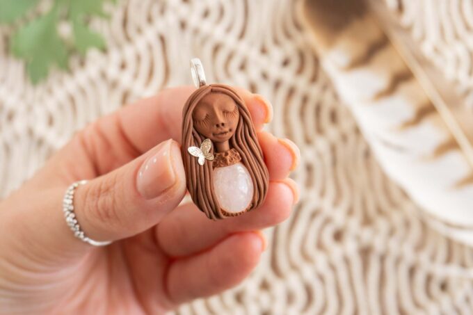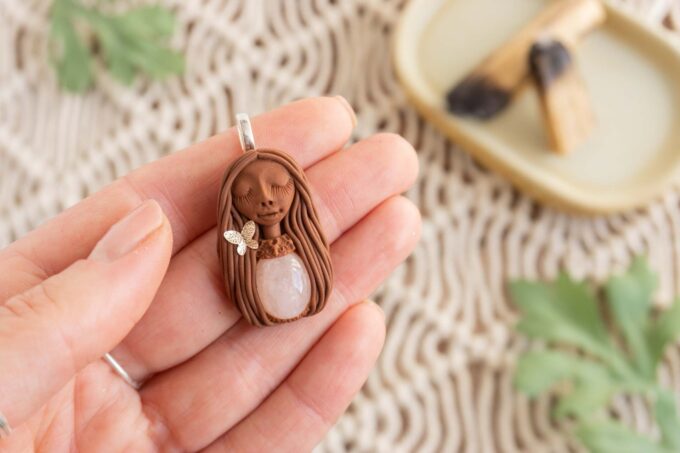 Čarobnica je izdelana iz polimerne gline. Vsak kos je unikaten in na voljo samo en kos. Izdelek lahko minimalno odstopa v barvnih niansah in detajlih, vendar se trudim, da bo vaš izdelek v naravi identičen opisu in fotografiji.