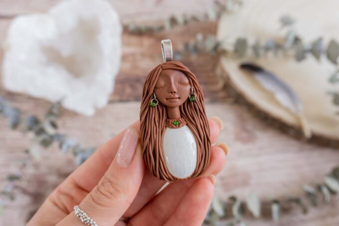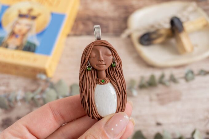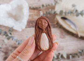 Vsaka Čarobnica je poimenovana po boginjah iz različnih obdobij, kultur in tradicij z vseh koncev sveta. Med izdelavo za vsako Čarobnico posebej povlečem orakelsko karto, ki nosi posebno sporočilo. Z vsako Čarobnico dobite torej še sporočilo, ki ga odkrijete šele, ko odprete paketek.