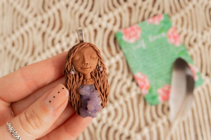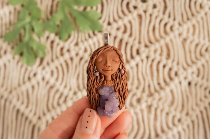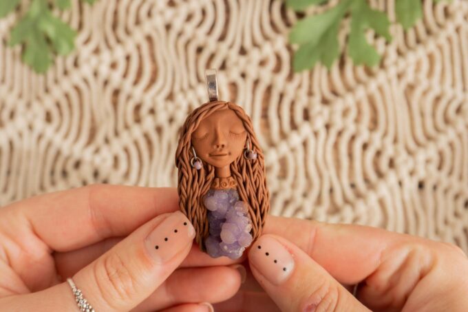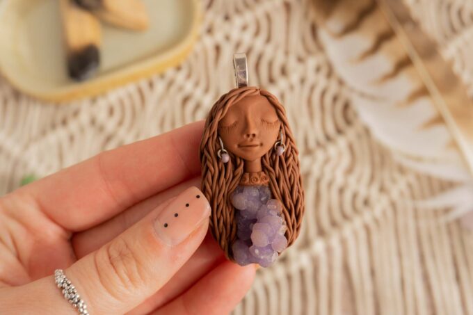 Čarobnica je izdelana iz polimerne gline. Vsak kos je unikaten in na voljo samo en kos. Izdelek lahko minimalno odstopa v barvnih niansah in detajlih, vendar se trudim, da bo vaš izdelek v naravi identičen opisu in fotografiji.