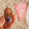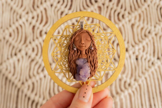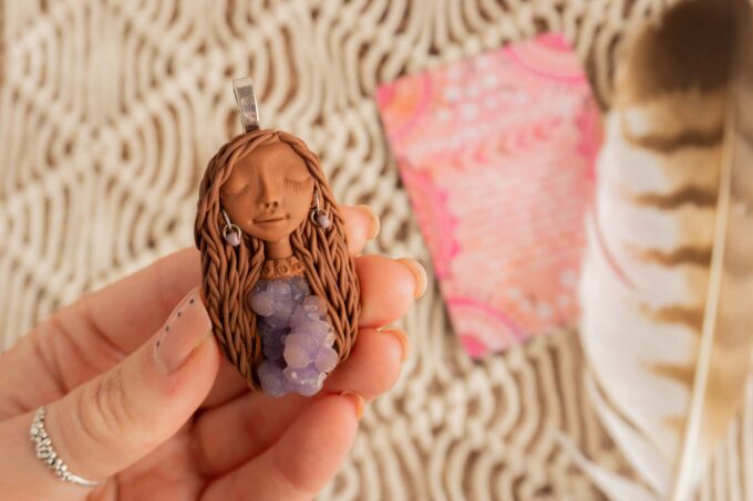 Vsaka Čarobnica je poimenovana po boginjah iz različnih obdobij, kultur in tradicij z vseh koncev sveta. Med izdelavo za vsako Čarobnico posebej povlečem orakelsko karto, ki nosi posebno sporočilo. Z vsako Čarobnico dobite torej še sporočilo, ki ga odkrijete šele, ko odprete paketek.
