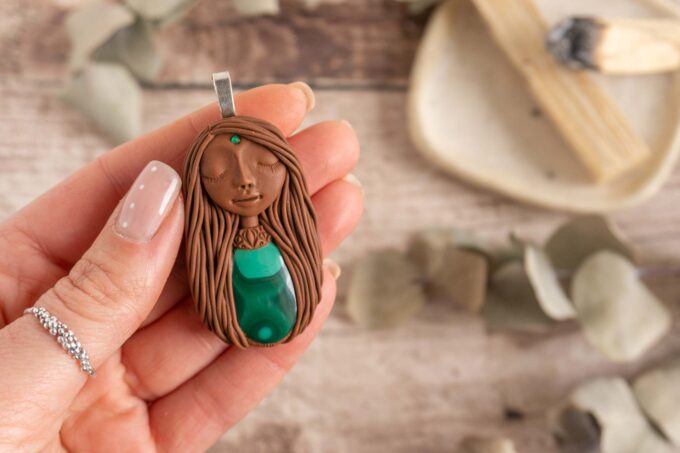 Vsaka Čarobnica je poimenovana po boginjah iz različnih obdobij, kultur in tradicij z vseh koncev sveta. Med izdelavo za vsako Čarobnico posebej povlečem orakelsko karto, ki nosi posebno sporočilo. Z vsako Čarobnico dobite torej še sporočilo, ki ga odkrijete šele, ko odprete paketek.
