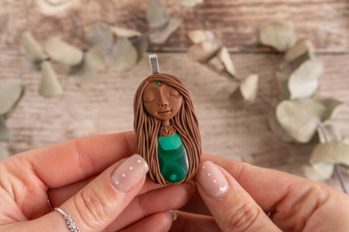 Čarobnica je izdelana iz polimerne gline. Vsak kos je unikaten in na voljo samo en kos. Izdelek lahko minimalno odstopa v barvnih niansah in detajlih, vendar se trudim, da bo vaš izdelek v naravi identičen opisu in fotografiji.