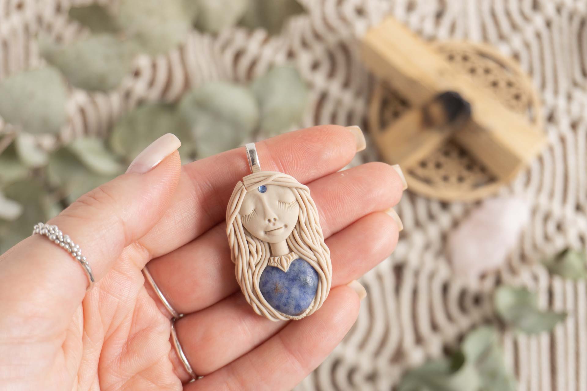 Čarobnica je izdelana iz polimerne gline. Vsak kos je unikaten in na voljo samo en kos. Izdelek lahko minimalno odstopa v barvnih niansah in detajlih, vendar se trudim, da bo vaš izdelek v naravi identičen opisu in fotografiji.