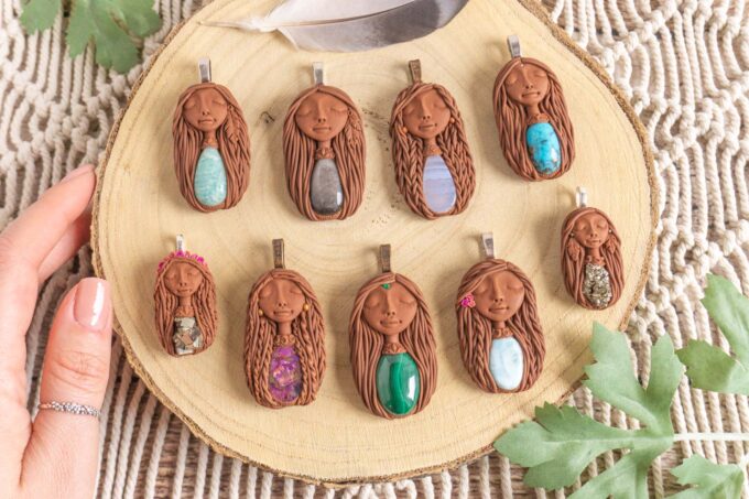 Vsaka Čarobnica je poimenovana po boginjah iz različnih obdobij, kultur in tradicij z vseh koncev sveta. Med izdelavo za vsako Čarobnico posebej povlečem orakelsko karto, ki nosi posebno sporočilo. Z vsako Čarobnico dobite torej še sporočilo, ki ga odkrijete šele, ko odprete paketek.