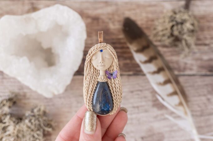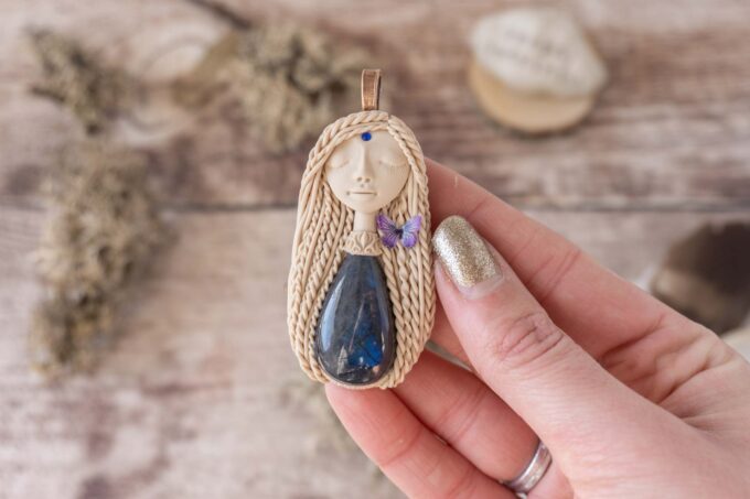 Čarobnica je izdelana iz polimerne gline. Vsak kos je unikaten in na voljo samo en kos. Izdelek lahko minimalno odstopa v barvnih niansah in detajlih, vendar se trudim, da bo vaš izdelek v naravi identičen opisu in fotografiji.