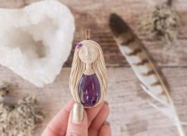 Vsaka Čarobnica je poimenovana po boginjah iz različnih obdobij, kultur in tradicij z vseh koncev sveta. Med izdelavo za vsako Čarobnico posebej povlečem orakelsko karto, ki nosi posebno sporočilo. Z vsako Čarobnico dobite torej še sporočilo, ki ga odkrijete šele, ko odprete paketek.