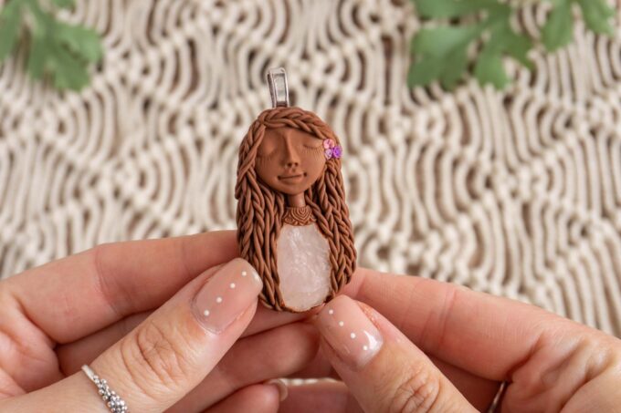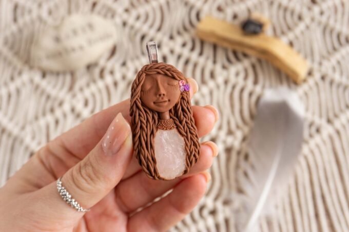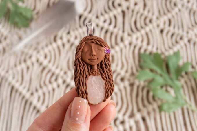 Čarobnica je izdelana iz polimerne gline. Vsak kos je unikaten in na voljo samo en kos. Izdelek lahko minimalno odstopa v barvnih niansah in detajlih, vendar se trudim, da bo vaš izdelek v naravi identičen opisu in fotografiji.