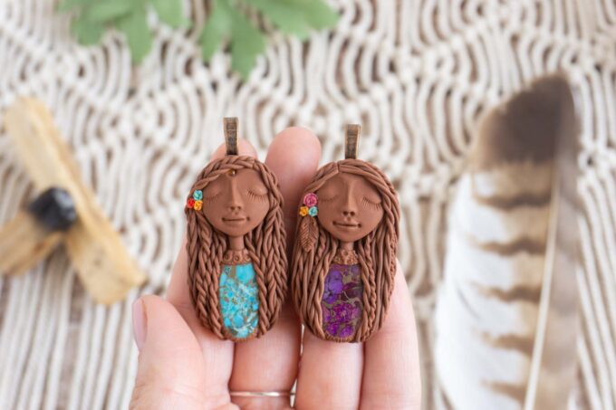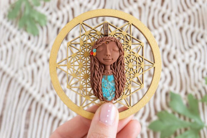 Vsaka Čarobnica je poimenovana po boginjah iz različnih obdobij, kultur in tradicij z vseh koncev sveta. Med izdelavo za vsako Čarobnico posebej povlečem orakelsko karto, ki nosi posebno sporočilo. Z vsako Čarobnico dobite torej še sporočilo, ki ga odkrijete