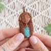 Kristal je narejen iz lomljencev turkiza povezanega z bakrom.