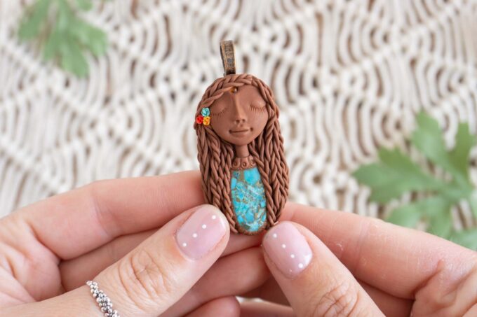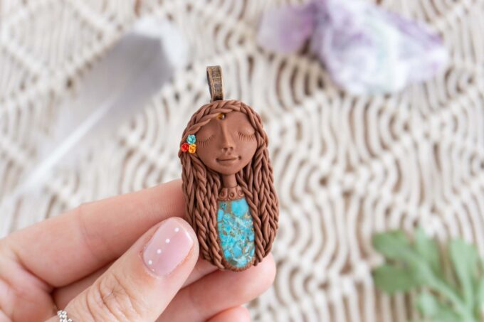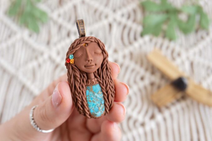 Čarobnica je izdelana iz polimerne gline. Vsak kos je unikaten in na voljo samo en kos. Izdelek lahko minimalno odstopa v barvnih niansah in detajlih, vendar se trudim, da bo vaš izdelek v naravi identičen opisu in fotografiji.