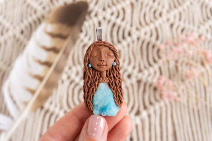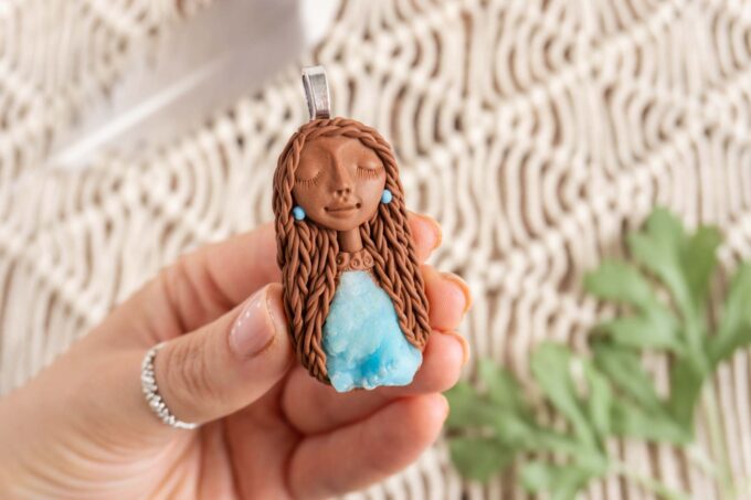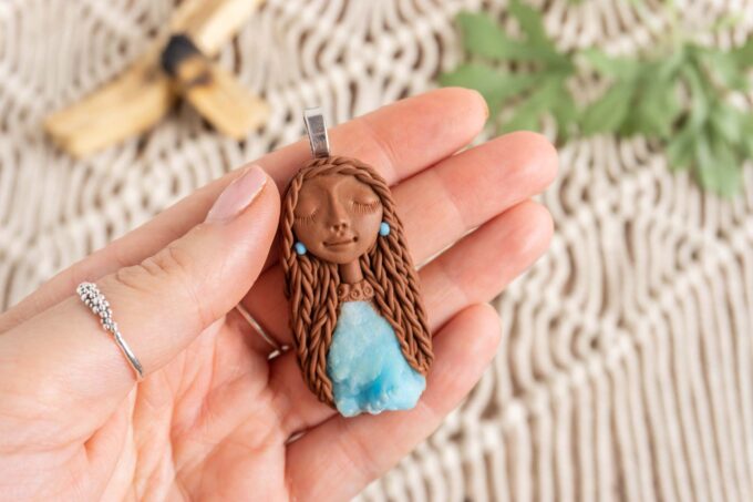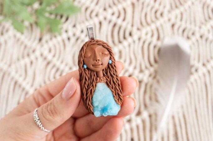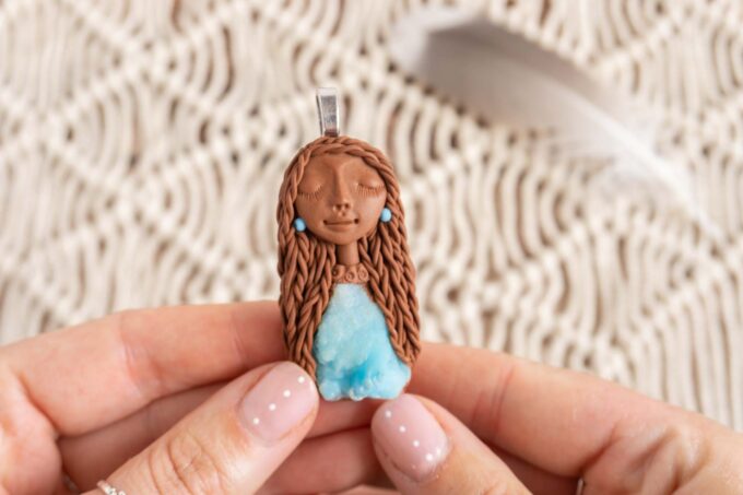 Čarobnica je izdelana iz polimerne gline. Vsak kos je unikaten in na voljo samo en kos. Izdelek lahko minimalno odstopa v barvnih niansah in detajlih, vendar se trudim, da bo vaš izdelek v naravi identičen opisu in fotografiji.