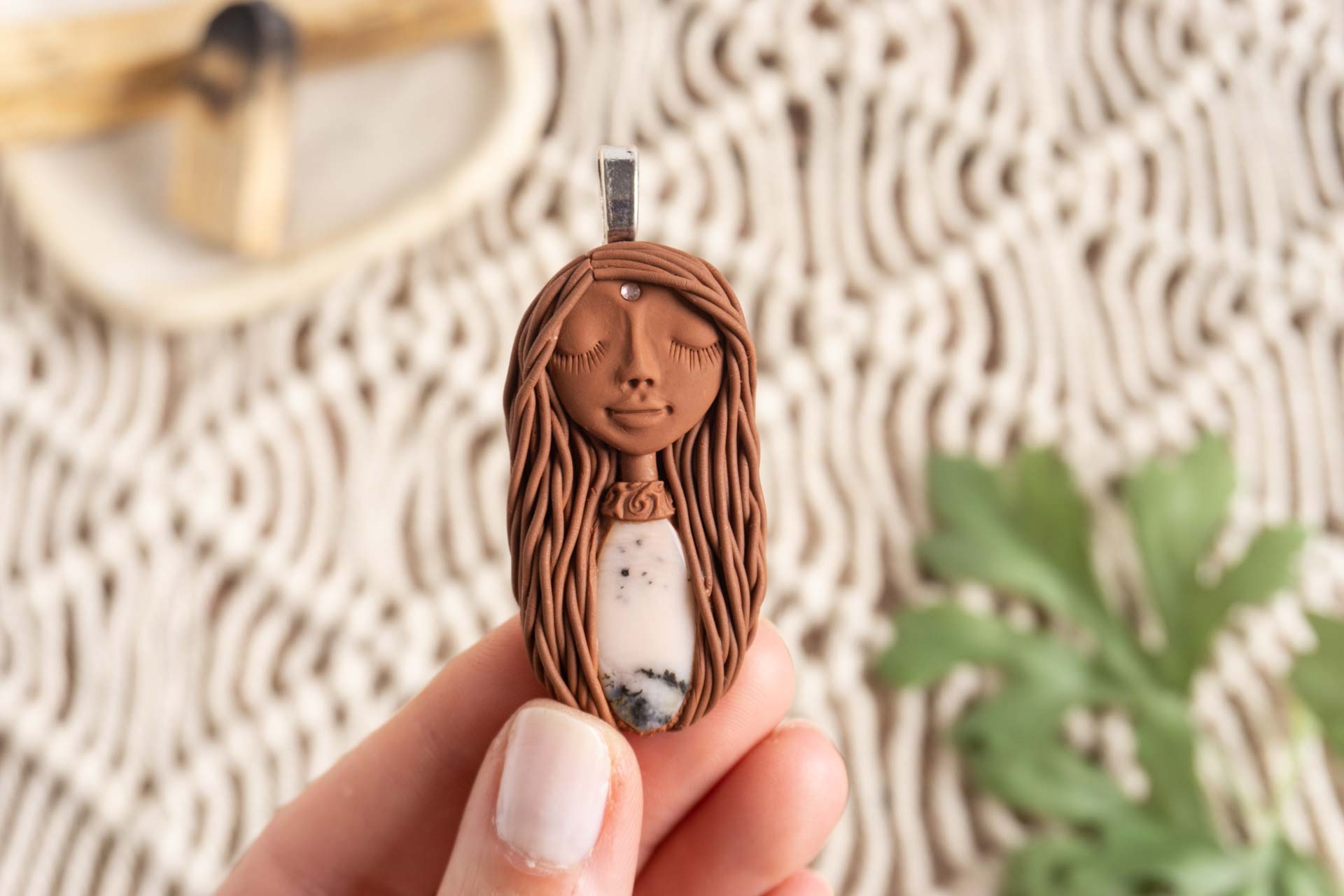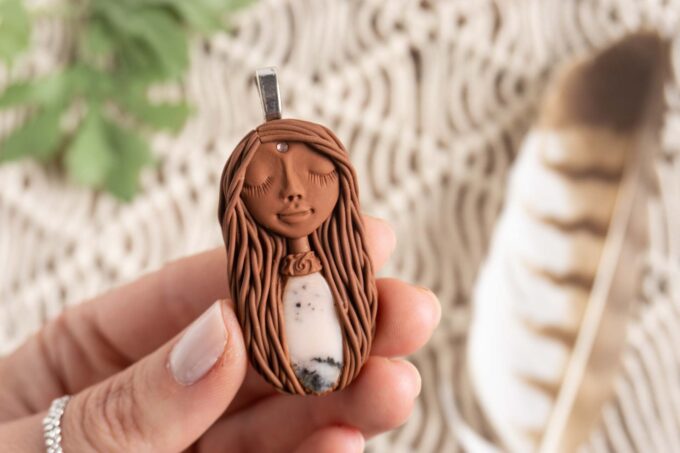 Čarobnica je izdelana iz polimerne gline. Vsak kos je unikaten in na voljo samo en kos. Izdelek lahko minimalno odstopa v barvnih niansah in detajlih, vendar se trudim, da bo vaš izdelek v naravi identičen opisu in fotografiji.
