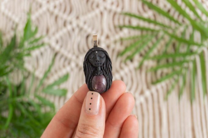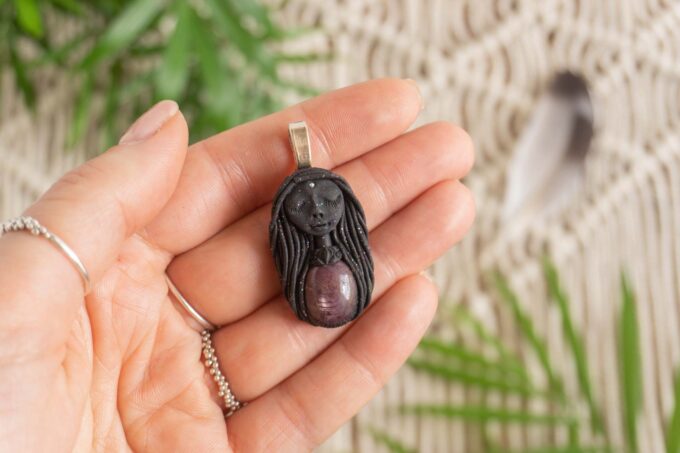 Čarobnica je izdelana iz polimerne gline. Vsak kos je unikaten in na voljo samo en kos. Izdelek lahko minimalno odstopa v barvnih niansah in detajlih, vendar se trudim, da bo vaš izdelek v naravi identičen opisu in fotografiji.