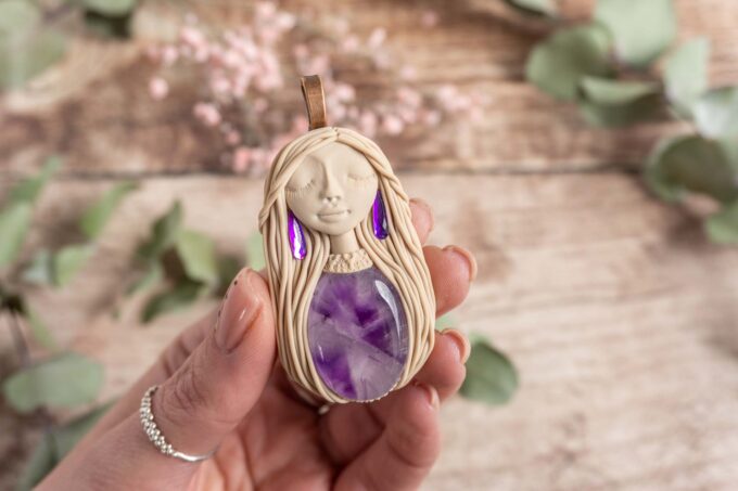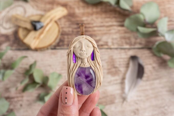 Čarobnica je izdelana iz polimerne gline. Vsak kos je unikaten in na voljo samo en kos. Izdelek lahko minimalno odstopa v barvnih niansah in detajlih, vendar se trudim, da bo vaš izdelek v naravi identičen opisu in fotografiji.