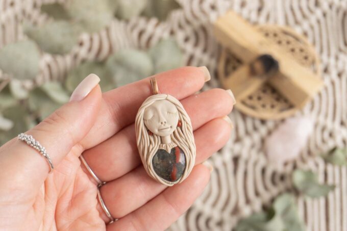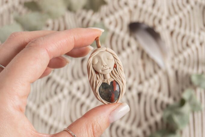 Čarobnica je izdelana iz polimerne gline. Vsak kos je unikaten in na voljo samo en kos. Izdelek lahko minimalno odstopa v barvnih niansah in detajlih, vendar se trudim, da bo vaš izdelek v naravi identičen opisu in fotografiji.
