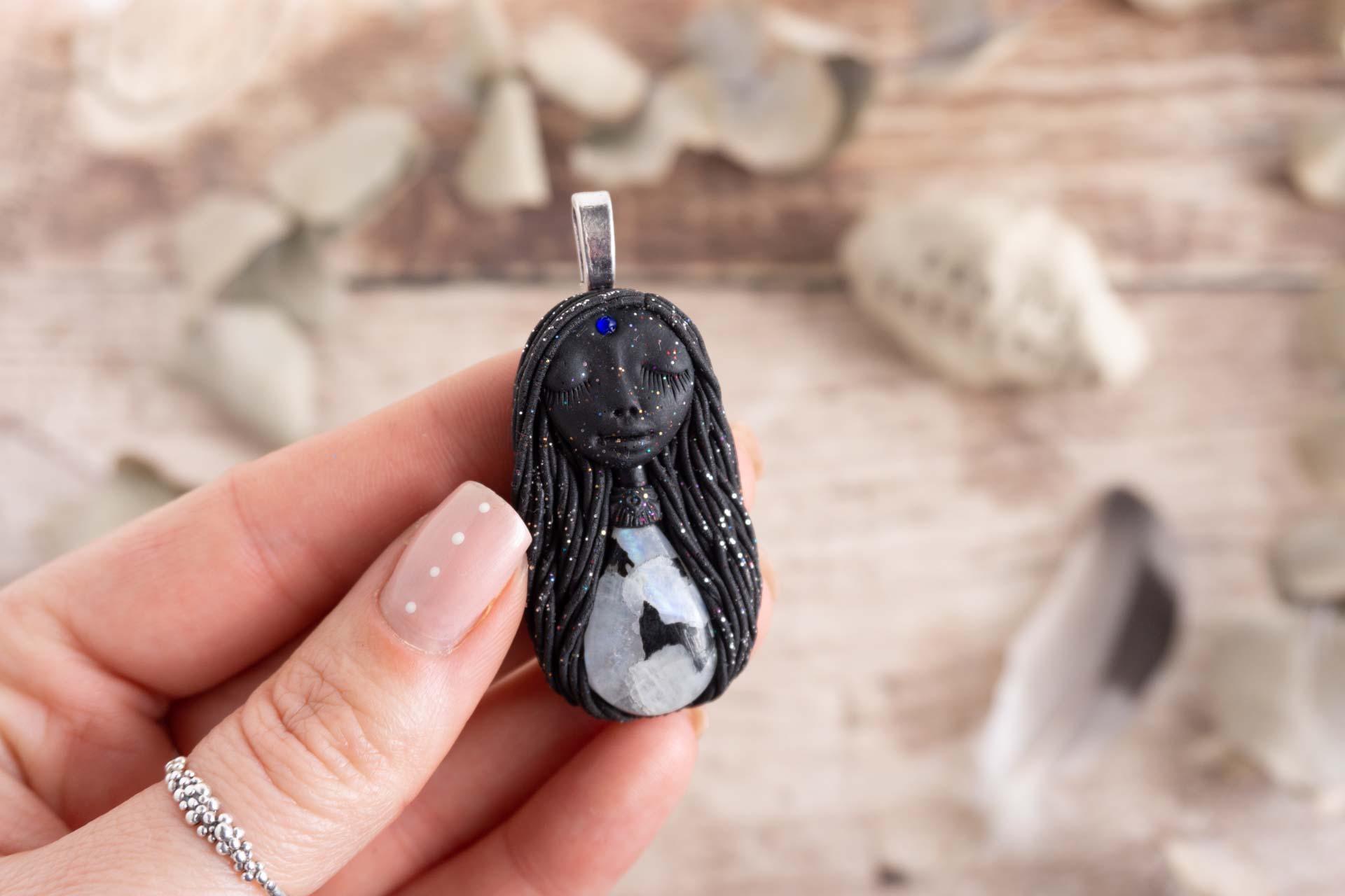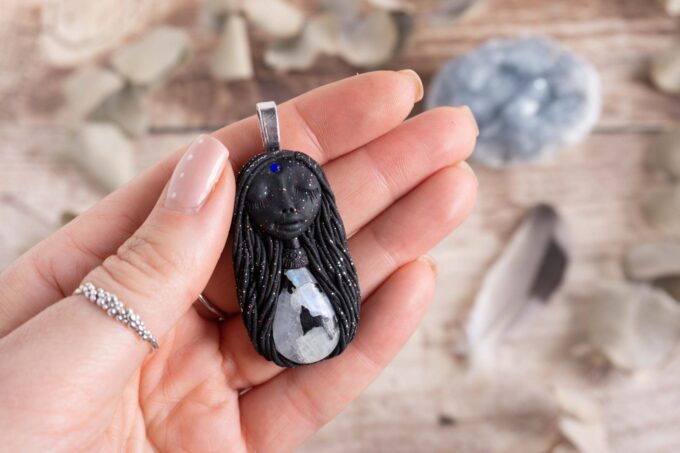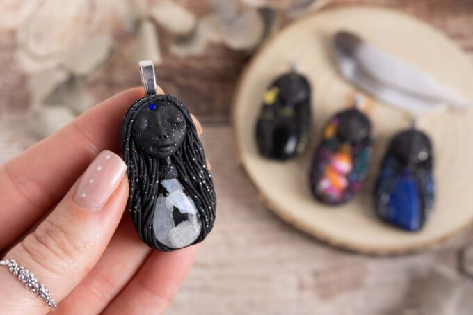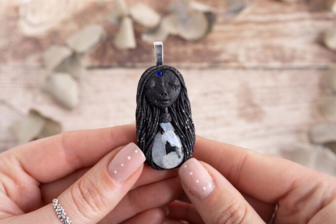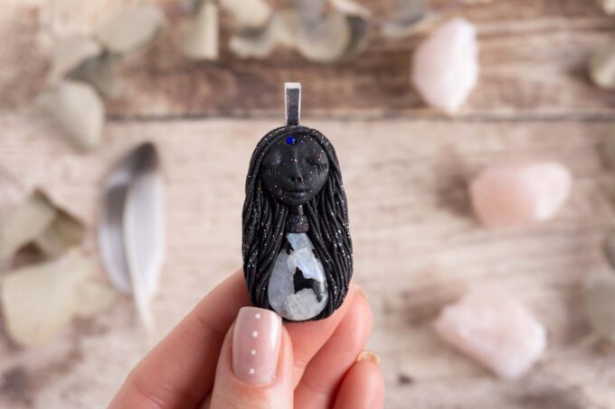 Čarobnica je izdelana iz polimerne gline. Vsak kos je unikaten in na voljo samo en kos. Izdelek lahko minimalno odstopa v barvnih niansah in detajlih, vendar se trudim, da bo vaš izdelek v naravi identičen opisu in fotografiji.