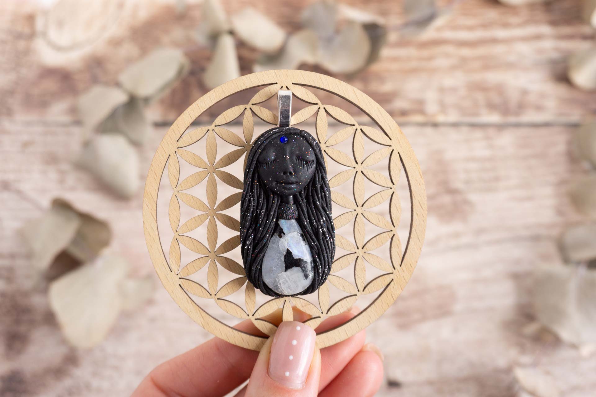 Vsaka Čarobnica je poimenovana po boginjah iz različnih obdobij, kultur in tradicij z vseh koncev sveta. Med izdelavo za vsako Čarobnico posebej povlečem orakelsko karto, ki nosi posebno sporočilo. Z vsako Čarobnico dobite torej še sporočilo, ki ga odkrijete šele, ko odprete paketek.