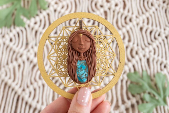 Vsaka Čarobnica je poimenovana po boginjah iz različnih obdobij, kultur in tradicij z vseh koncev sveta. Med izdelavo za vsako Čarobnico posebej povlečem orakelsko karto, ki nosi posebno sporočilo. Z vsako Čarobnico dobite torej še sporočilo, ki ga odkrijete
