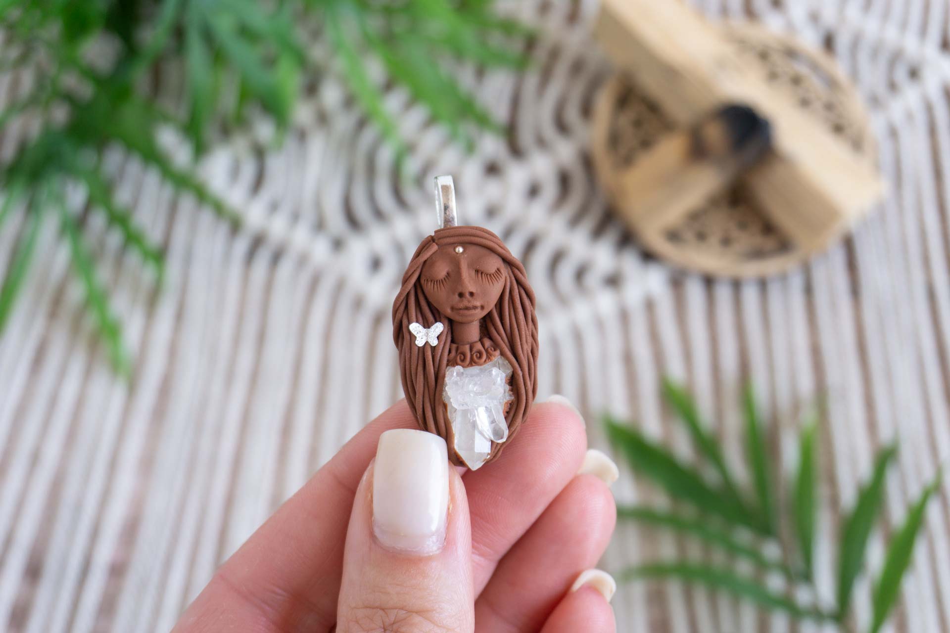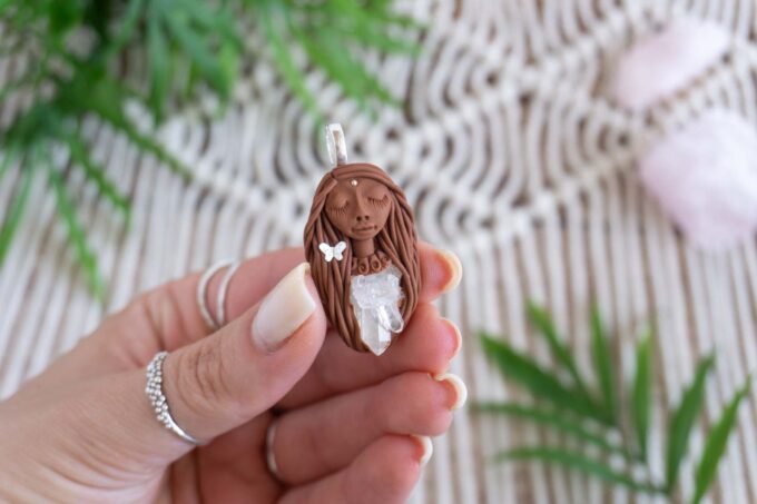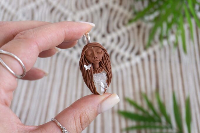 Čarobnica je izdelana iz polimerne gline. Vsak kos je unikaten in na voljo samo en kos. Izdelek lahko minimalno odstopa v barvnih niansah in detajlih, vendar se trudim, da bo vaš izdelek v naravi identičen opisu in fotografiji.