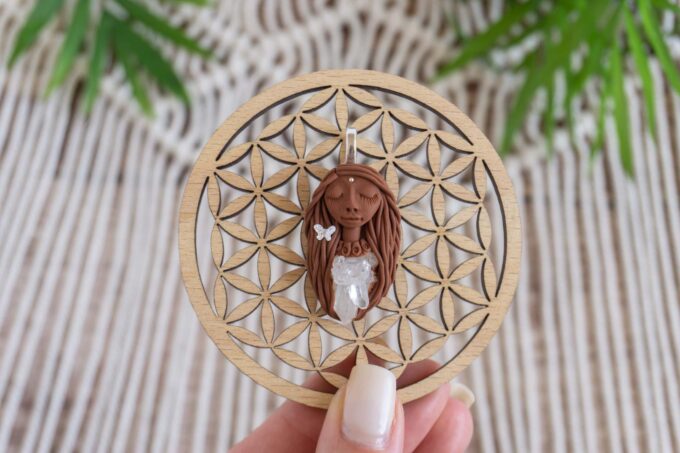 Vsaka Čarobnica je poimenovana po boginjah iz različnih obdobij, kultur in tradicij z vseh koncev sveta. Med izdelavo za vsako Čarobnico posebej povlečem orakelsko karto, ki nosi posebno sporočilo. Z vsako Čarobnico dobite torej še sporočilo, ki ga odkrijete šele, ko odprete paketek.