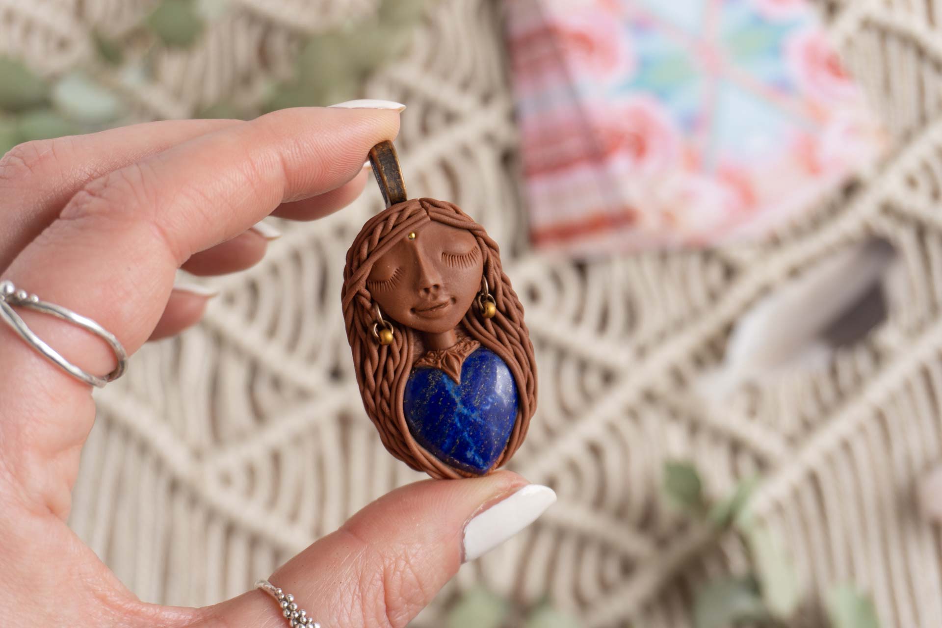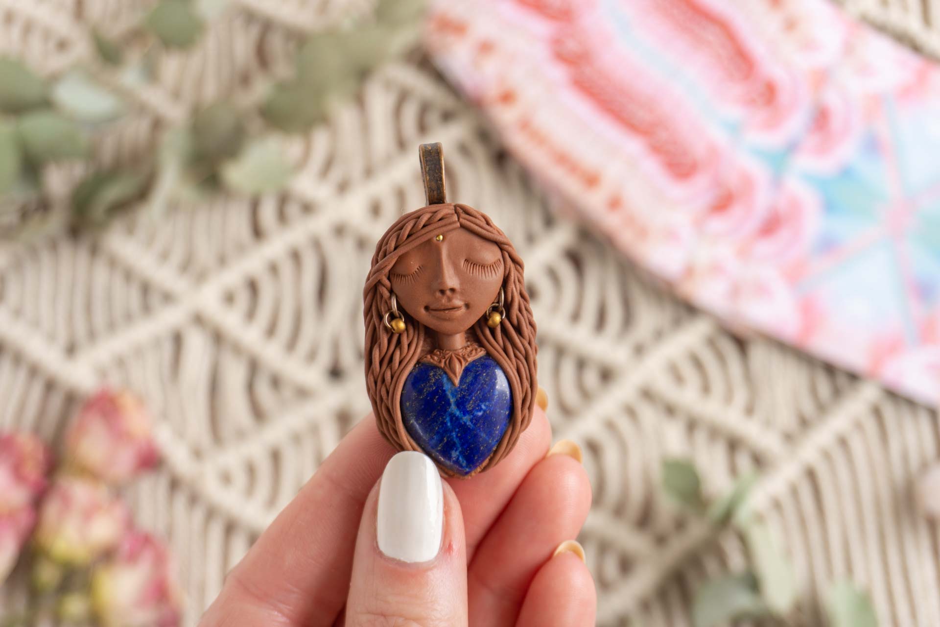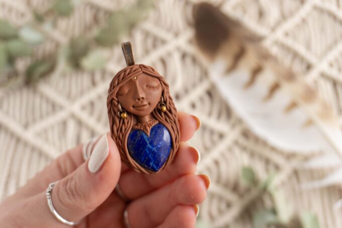 Čarobnica je izdelana iz polimerne gline. Vsak kos je unikaten in na voljo samo en kos. Izdelek lahko minimalno odstopa v barvnih niansah in detajlih, vendar se trudim, da bo vaš izdelek v naravi identičen opisu in fotografiji.