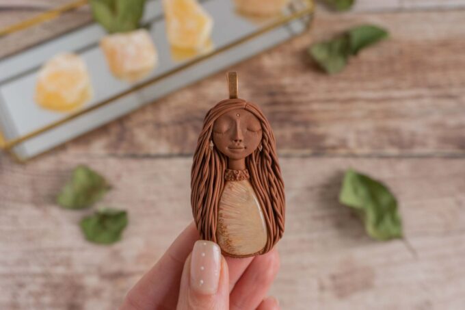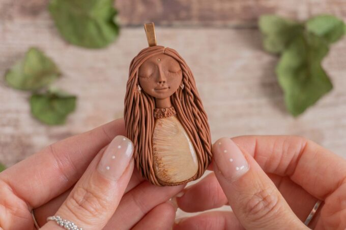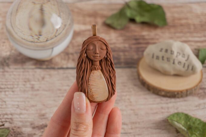 Čarobnica je izdelana iz polimerne gline. Vsak kos je unikaten in na voljo samo en kos. Izdelek lahko minimalno odstopa v barvnih niansah in detajlih, vendar se trudim, da bo vaš izdelek v naravi identičen opisu in fotografiji.