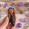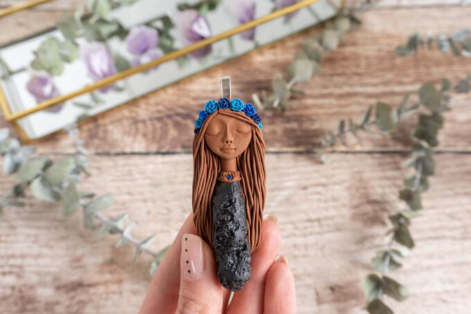 Čarobnica je izdelana iz polimerne gline. Vsak kos je unikaten in na voljo samo en kos. Izdelek lahko minimalno odstopa v barvnih niansah in detajlih, vendar se trudim, da bo vaš izdelek v naravi identičen opisu in fotografiji.