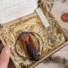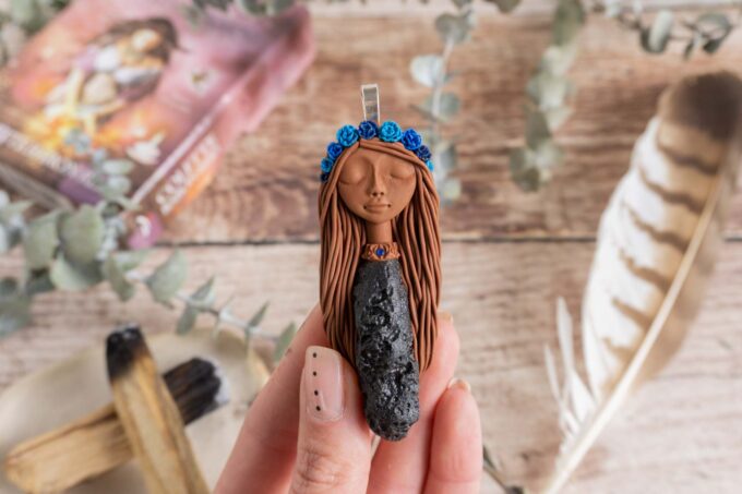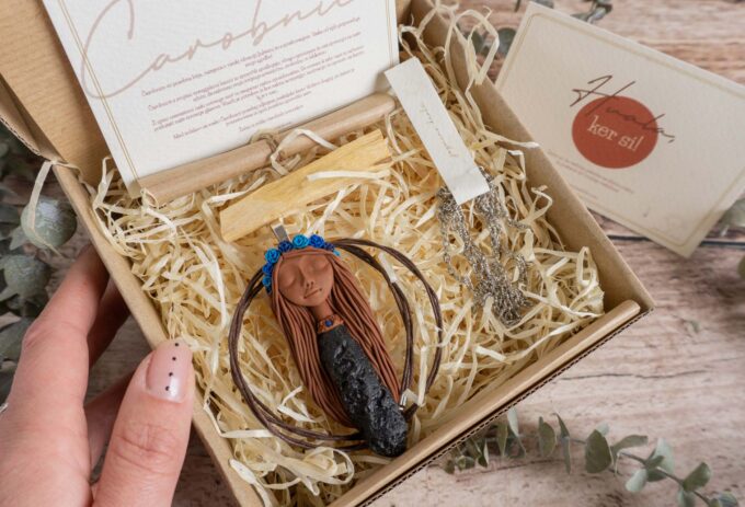 Vsaka Čarobnica je poimenovana po boginjah iz različnih obdobij, kultur in tradicij z vseh koncev sveta. Med izdelavo za vsako Čarobnico posebej povlečem orakelsko karto, ki nosi posebno sporočilo. Z vsako Čarobnico dobite torej še sporočilo, ki ga odkrijete šele, ko odprete paketek.